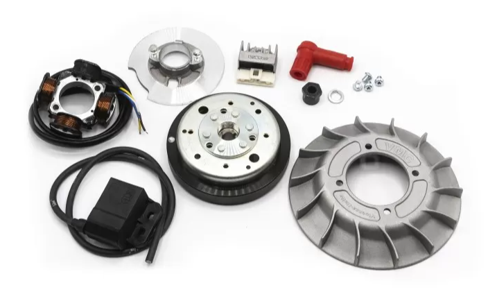 Das System beinhaltet ein leichtes Polrad mit Lüfter von 1,5 kg sowie einen Aluminiumlüfter mit größerem Schaufelprofil, wodurch der Luftstrom erhöht und die Kühlung des Zylinders verbessert wird.